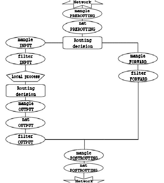 I've consulted Marc Boucher and others from the core Netfilter team. Many heartfelt thanks to them for their work and for their help on this tutorial, that I originally wrote for boingworld.com, and now maintain for my own site frozentux.net. This document will guide you through the setup process step by step and hopefully help you to understand some more about the iptables package. I will base most of the stuff here on the example rc.firewall file, since I find that example a good way to learn how to use iptables. I have decided to just follow the basic chains and from there go down into each and one of the chains traversed in each due order. That way the tutorial is a little bit harder to follow, though this way is more logical. Whenever you find something that's hard to understand, just come back to this tutorial.