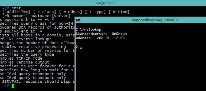 Mit „server“ wird der DNS-Server angegeben der zur Auflösung genutzt wird. Die Option „ls -d“ führt die Anfrage für die Domain aus.