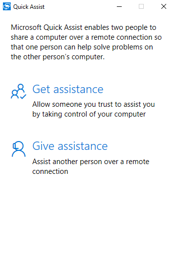Windows 10 Quick Assist enables two people to share a computer remotely. The easiest way to find the app is to hit the Windows-Logo key and enter quick assist