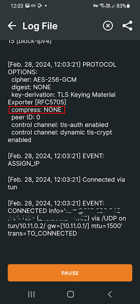 This completely deactivates full and asymmetric compression, which is useful for functionality and secure communication with OpenVPN mobile clients. These finding can give valuable hints to make your users happy.