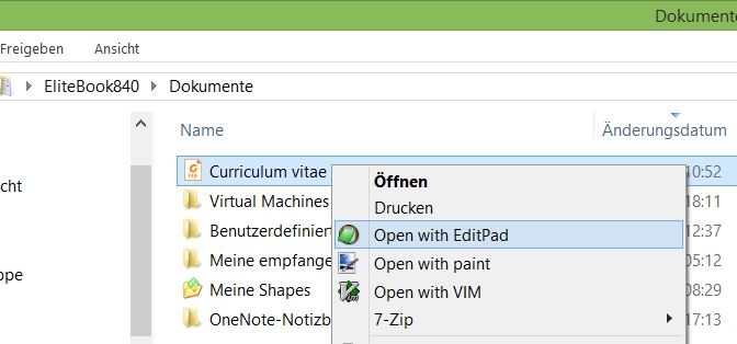 Hier das Explorer erweiterte Kontextmenü Editor „vi“, natürlich können auch andere Programme wie EditPad oder paint.net eingesetzt werden.