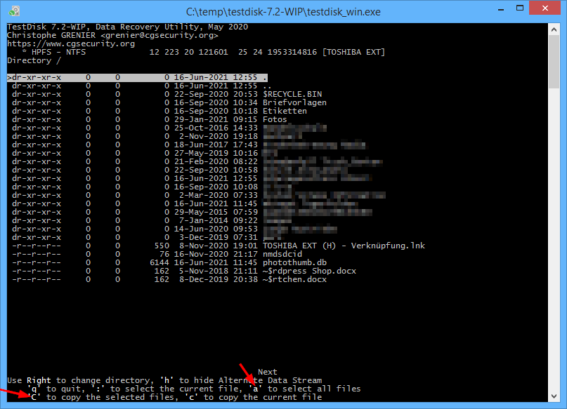 Ein Blick in die TestDisk Dokumentation kann sich lohnen, die PDF-Datei testdisk.pdf findet man ebenfalls nach dem entpacken im Verzeichnis, hier werden alle Funktionen zur Anwendung von TestDisk beschreiben.