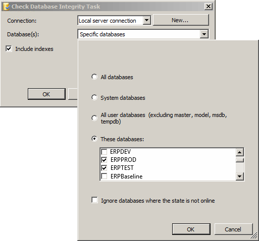 Zunächst werden die zu selektierenden Datenbanken auf Integrität geprüft.