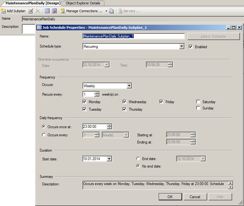 Die gewünschte Backup Rotation definieren wir, damit der Job zu den gewünschten Zeiten ausgeführt wird.