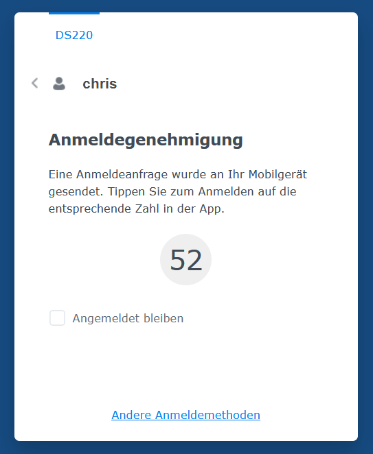 Bei der nächsten Anmeldung wird der Code für die Anmeldegenehmigung angezeigt, diesen man für die Mobile App benötigt.