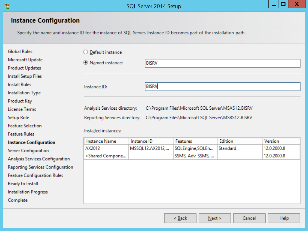 Auswahl der neuen Report Server Instanz, die SQL Server 2014 Reporting Services und Analysis Services können nun für unser BI konfiguriert werden.