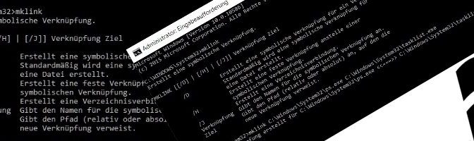 Unter Windows lassen sich neue Symlinks mit dem Kommandozeilenbefehl mklink anlegen. Dazu öffnet man mit +X die Eingabeaufforderung als Administrator, und gibt folgende Syntax ein: