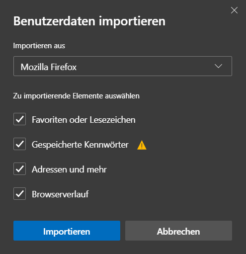 Favoriten importieren in Microsoft Edge