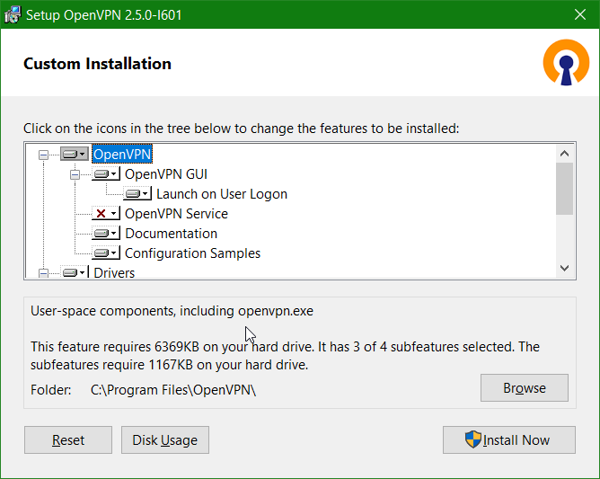 OpenVPN für Windows kann von der Community Webseite hier heruntergeladen werden, bei Windows 10 mit Doppelklick auf OpenVPN-2.5.0-I601-amd64.msi das Setup starten.