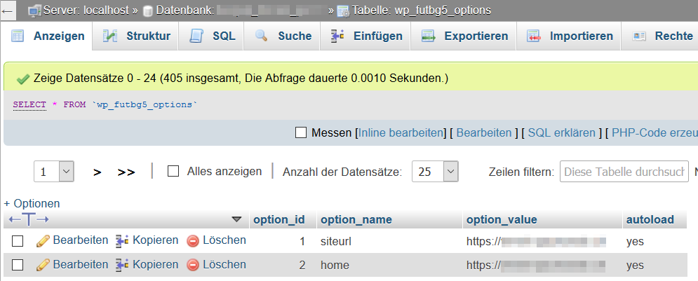 WordPress-Adresse (URL) und Webseite-Adresse (URL) in phpMyAdmin ändern