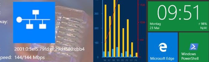 What’s IP zeigt Informationen über die Internet-Verbindung per Live Tile. Die App wird sich bei Netzwerk Administratoren und IT-Techniker im Alttag als nützlich erweisen, da die sonst üblichen Dienstprogramme oder Eingabebefehle nicht abgerufen werden müssen. Im Gegensatz zu anderen Monitoring-Tools die zur Auswahl stehen, ermittelt What’s IP die aktuelle Interne IPv4-Adresse des Computers, als auch die Externe IP im Internet und zeigt diese im Live Tile an, öffnet man die App werden weitere Details der momentanen Verbindung aufgezeigt, wie Gateway, DNS-Server, SSID, Max Speed, die IPv6 Adresse und weiteres mehr. Bei allfälligen Netzwerkverbindungsprobleme wird eine Warnung ausgegeben.