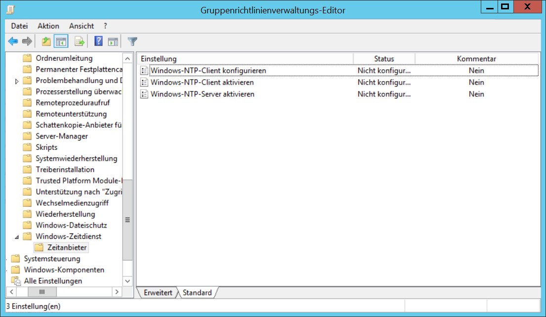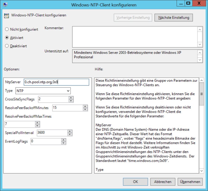 Die NTP Konfiguration kann auch über GPO gemacht werden, hierzu gpmc.msc aufrufen.