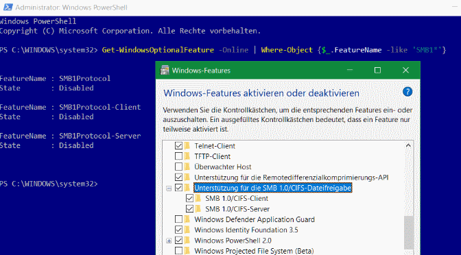 Quelle: https://support.microsoft.com/de-de/help/4034314/smbv1-is-not-installed-by-default-in-windows